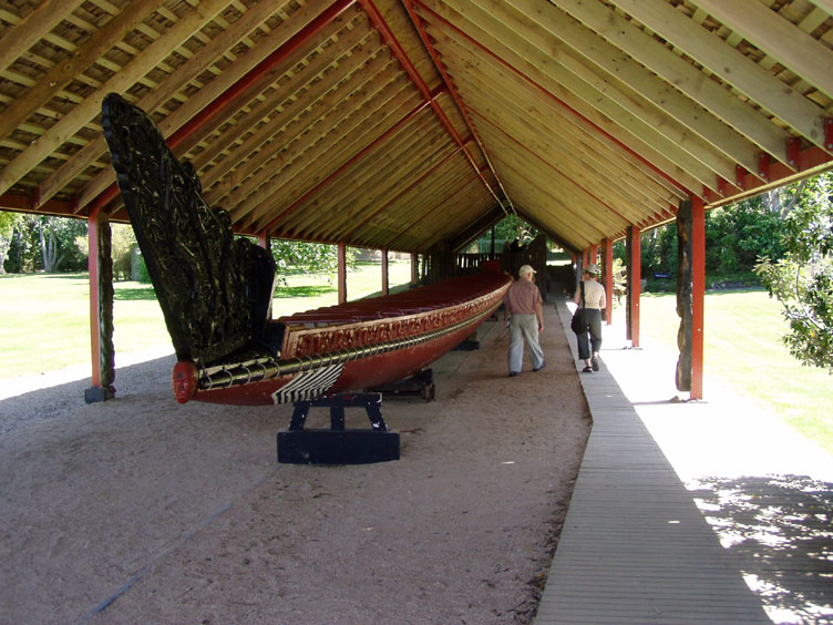 Das wohl längste Kriegskanu der Welt im Waitangi National Reserve.